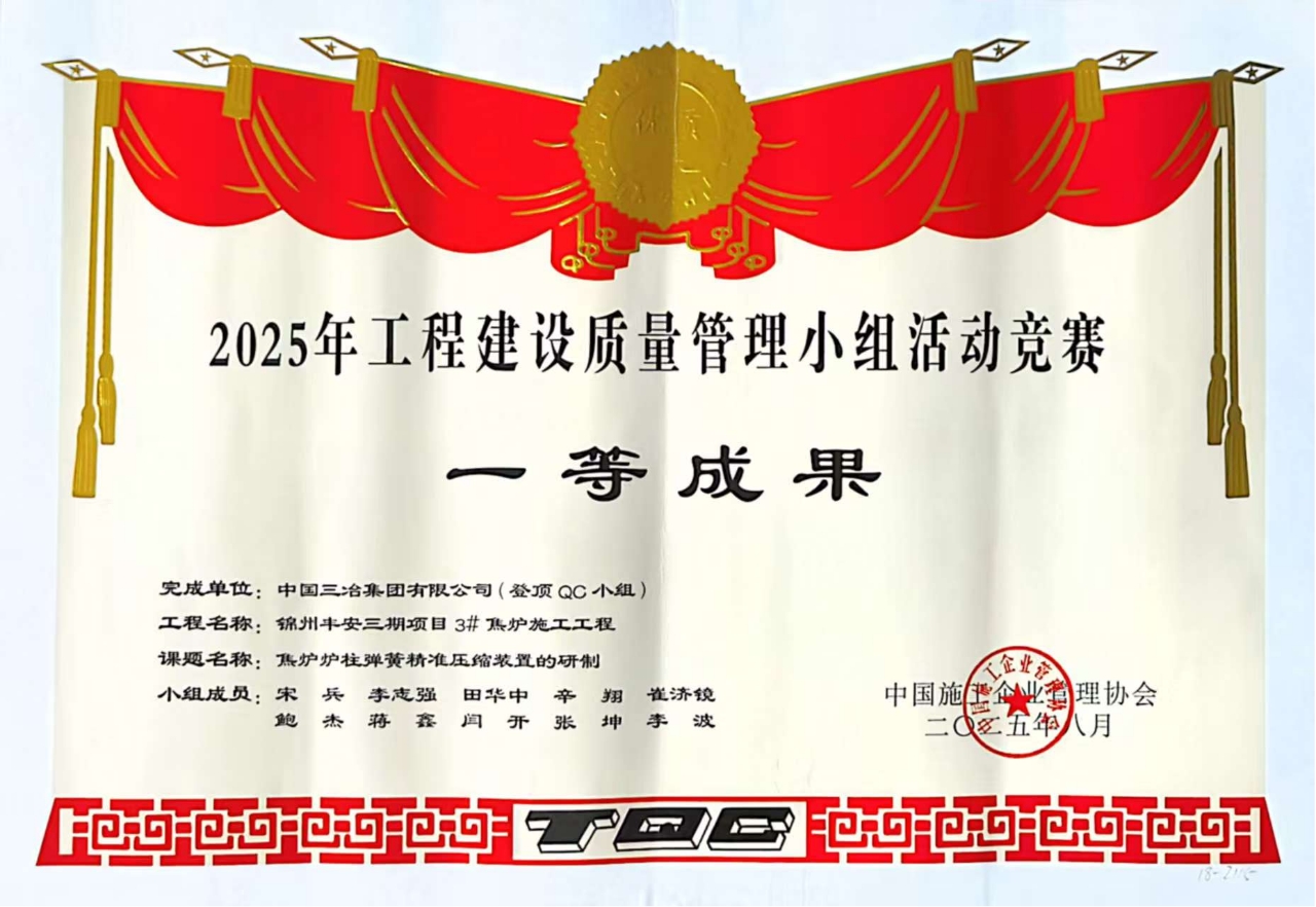 與往年相比,中國三冶今年獲獎數(shù)據實現(xiàn)多項突破:一等獎數(shù)量同比增長33.33%,二等獎增長50%,創(chuàng)新型成果更是翻倍至4項,增幅達100%。其中,工業(yè)工程公司"焦爐爐柱彈簧精準壓縮裝置的研制"成果,不僅以遼寧省綜合評分第一名的成績斬獲"最佳發(fā)布獎",更通過將彈簧壓縮精度控制在"±1mm"的嚴苛標準內,為同業(yè)同類工程提供了可復制的精準質量管控方案。這正是中國三冶質量管理從"解決問題"向"創(chuàng)造標準"轉型升級的生動體現(xiàn)。