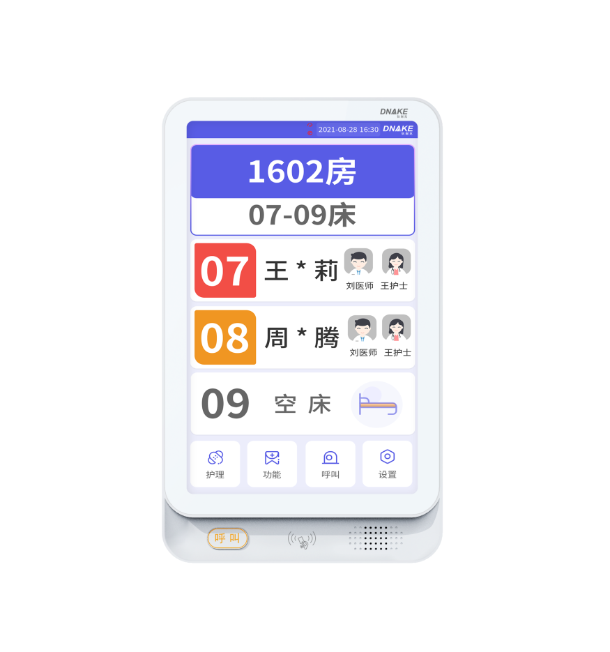 創(chuàng)新設(shè)置在病房門口的終端設(shè)備,主要用于顯示病房相關(guān)信息,內(nèi)置簡易醫(yī)護工作站,支持病房床位一覽、患者動態(tài)跟蹤、呼叫對講、增援求救等多種呼叫類型,信息齊全,及時響應(yīng)醫(yī)護需求,實現(xiàn)智能化醫(yī)護管理。