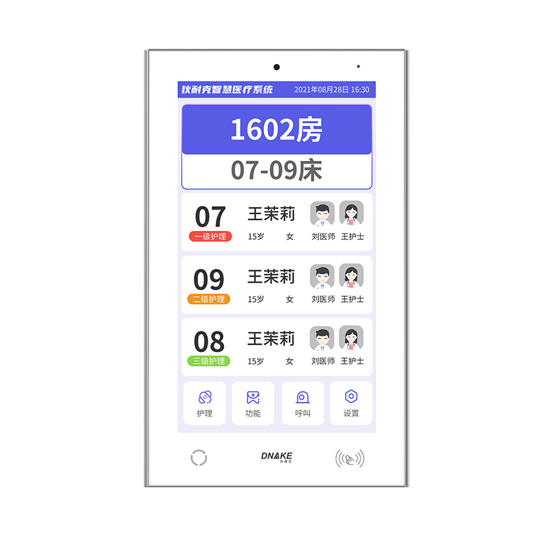 創(chuàng)新設置在病房門口的終端設備,主要用于顯示病房相關信息,內(nèi)置簡易醫(yī)護工作站,支持病房床位一覽、患者動態(tài)跟蹤、呼叫對講、增援求救等多種呼叫類型,信息齊全,及時響應醫(yī)護需求,實現(xiàn)智能化醫(yī)護管理。